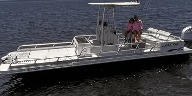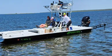 Captain Adam runs this brand new tunnel hull. Getting across the Flats in some shallow water is the ticket in this boat. Lots of storage and very comfortable seating.
